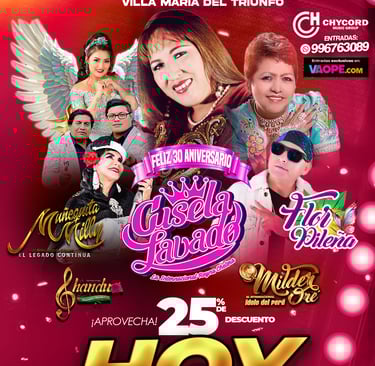 Gisela Lavado celebra su aniversario el 19 de octubre en Tintay, Villa María del Triunfo. En un momento especial, ¡casi se besa con su bailarín Ariel Iván durante la filmación de su nuevo video clip! No te pierdas esta fiesta llena de amor y música.